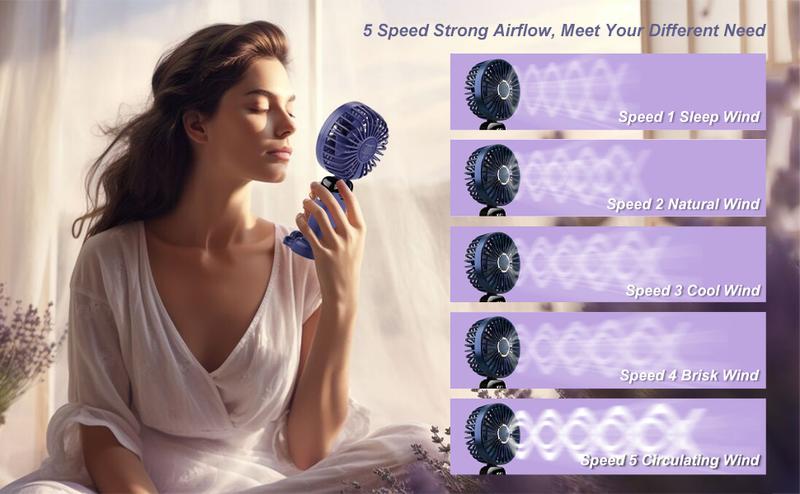 Powerful Airflow: Features an aerodynamic system for brisk, high-speed cooling with 5 speed settings to customize comfort—great for travel, camping, makeup, and indoor/outdoor use.